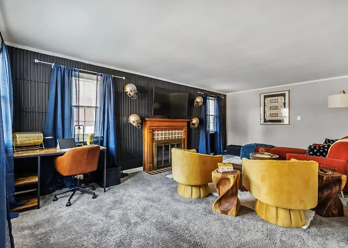 Welcome to the Eclectic 4Bed With BBQ-Firepit-Games-Secretgarden & 7 Mile To Downtown Villa, a charming retreat that seamlessly combines comfort with elements of fun and relaxation. Nestled just 30 kilometers from Pittsburgh International Airport, this villa is perfectly positioned for both leisure and convenience, making it an ideal getaway for families and groups seeking a unique experience.